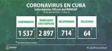 Cubaminrex, 30 de abril 2020. Al cierre del día de ayer, 30 de abril, se encuentran ingresados en hospitales para vigilancia clínico epidemiológica 2 mil 897 pacientes. Otras 3 mil 892 personas se vigilan en sus hogares, desde la Atención Primaria de Salud.