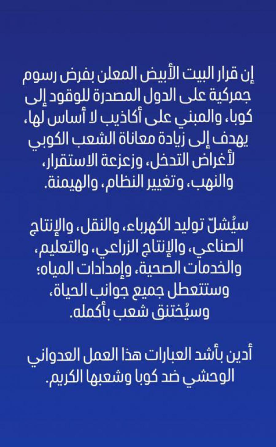 En el marco del intenso esfuerzo de recuperación que de inmediato se inició en Cuba a raíz del paso del huracán Melissa por el territorio nacional el 29 de octubre de 2025, y de la asistencia solidaria que también llegó desde el primer momento, el gobierno de EE.UU. proclamó la intención de enviar ayuda humanitaria.