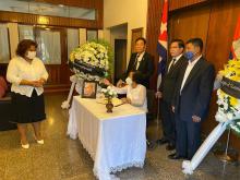La presidenta del Grupo Parlamentario de Amistad con Cuba de la Asamblea Nacional de Cambodia, Nin Saphon, firmó el libro de condolencias por el deceso de Ricardo Alarcón de Quesada. La distinguida legisladora expresó su más profundo pesar, en nombre del órgano y de su reino. En su cuenta de twitter el Presidente cubano, Miguel Díaz-Canel expresó que Ricardo Alarcón de Quesada fue gran patriota y brillante diplomático de la Revolución Cubana, cuya obra defendió con pasión y sólidos argumentos, enorgulleciendo al pueblo de Cuba