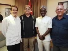 Havana, October 1, 2025.- The Minister of Information and Civic Education of the Republic of Sierra Leone, Honorable Chernor Bah, visited the Latin American School of Medicine, fulfilling his work agenda during his official visit to Cuba. Minister Bah was received by the Rector of ELAM, Dr. C. Leiram Lima Sarmiento.