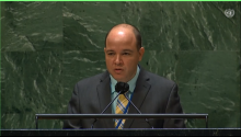 Nueva York, 11 de noviembre de 2021. El embajador Yusnier Romero Puentes, representante permanente alterno de Cuba ante Naciones Unidas, intervino hoy en el debate del Tema 77: “Informe de la Corte Penal Internacional.”, perteneciente a la agenda de la organización mundial, donde expresó el compromiso de la isla con la lucha contra la impunidad de los crímenes que afectan a la Comunidad Internacional.