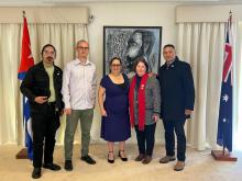 Canberra, 18 de septiembre de 2025. En la sede de la Embajada de Cuba en Canberra, la embajadora Tanieris Dieguez recibió al Presidente del Partido Comunista Vinicio Molina quien estuvo acompañado de varios miembros del Comité Central de esa organización.