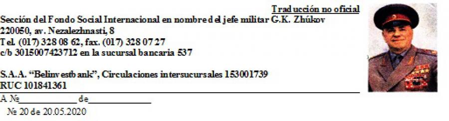 de la Asociación belarusa de los veteranos combatientes internacionalistas «cubanos» y la Sección del Fondo Social Internacional “G.K. Zhúkov” en apoyo a la campaña internacional de denuncia al Bloqueo norteamericano contra Cuba, en el marco de la situación creada por la pandemia COVID-19, y la necesidad del cese impostergable del bloqueo económico, comercial y financiero contra Cuba por parte de los Estados Unidos de América.