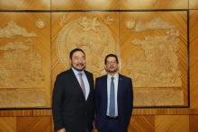 Ulán Bator, Mongolia. 3 de agosto de 2021. – El Excmo. Sr. Bat-Erdene Badmaanuambun, Miembro del Gran Hural Estatal de Mongolia (Parlamento) y presidente del Grupo Parlamentario de Amistad Mongolia-Cuba, sostuvo un encuentro en la sede del legislativo con el Embajador de Cuba, Raúl Delgado Concepción, el cual abordo temas de interés bilateral e internacional, así como la situación en Cuba y el enfrentamiento de nuestras autoridades y nuestro pueblo contra los intentos de desestabilización interna a partir de la grave situación de la pandemia de la Covid-19 y el recrudecimiento del criminal bloqueo de los Estados Unidos.