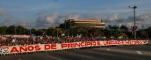 A 132 años de los sucesos de Chicago, que dieron lugar al Día Internacional de los Trabajadores, el pueblo cubano fue protagonista de una jornada de celebración, como prueba de su apoyo a la Revolución, al Partido, y a la nueva dirección del país.En la capitalina Plaza de la Revolución, el acto central por la fecha aglutinó a cerca de 900 000 personas, y estuvo presidido por el General de Ejército Raúl Castro Ruz, Primer Secretario del PCC, Miguel Díaz-Canel Bermúdez, Presidente de los Consejos de Estado y de Ministros, y otros dirigentes.La estratégica batalla en el terreno económico-produ