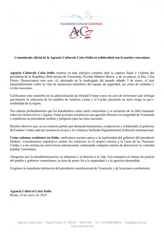 La AAGC se une a Cuba para condenar con la mayor energía la agresión militar contra Venezuela, calificándola de crimen internacional contra el pueblo soberano de Venezuela. Esta guerra calculada contra Caracas, sin ninguna provocación, tiene como objetivo imperial los recursos naturales de Venezuela.
