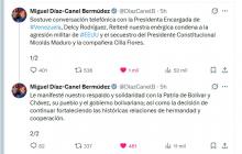La Habana, 22 de enero de 2026. El Primer Secretario del Comité Central del Partido Comunista de Cuba y Presidente de la República de Cuba Miguel Díaz-Canel Bermúdez, reiteró hoy a la Presidenta Encargada de Venezuela, Delcy Rodríguez, mediante llamada telefónica, su enérgica condena a la agresión militar de Estados Unidos y el secuestro del Presidente Constitucional Nicolás Maduro y la compañera Cilia Flores.