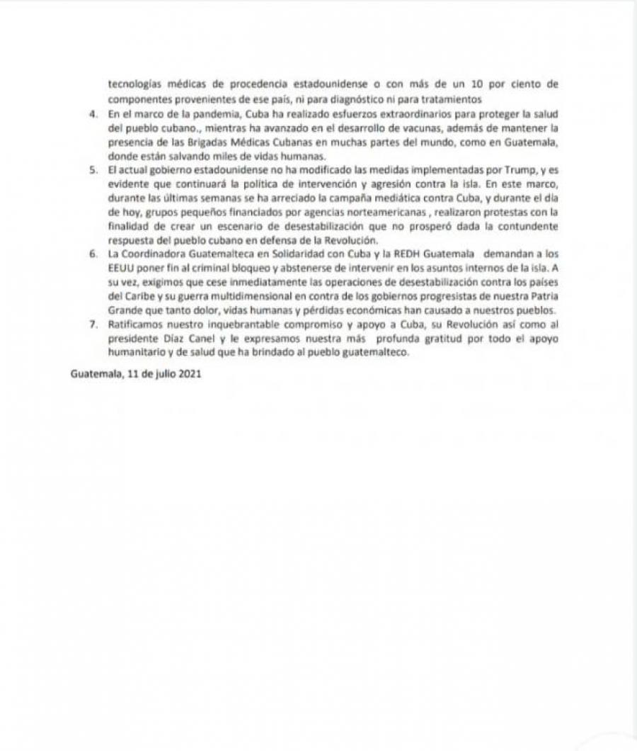Declaración de la Asociación de cubanos residentes en Guatemala.