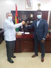 Bissau 14 mayo de 2021. – El ministro de Salud Pública de Guinea Bissau recién nombrado, Dr. Dionisio Cumbá, sostuvo un encuentro con el embajador de Cuba, Dr. C Raúl de la Peña Silva. En la ocasión el dirigente guineense resaltó la solidaridad que históricamente ha brindado Cuba a los pueblos del mundo, y en especial al de Guinea Bissau.