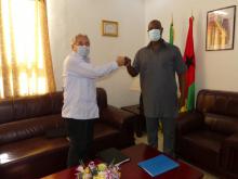 Bissau, 27 de noviembre de 2020. El Primer Ministro del Gobierno de Guinea Bissau, Ing. Nuno Gomes Nabiam, recibió al embajador de Cuba, Dr. C Raúl de la Peña Silva. En la ocasión el dirigente guineense agradeció la ayuda solidaria recibida del gobierno cubano en el enfrentamiento a la COVID-19 con el envío de una Brigada Médica del Contingente “Henry Reeve” conformada por 23 profesionales de la salud cubanos, que ya termina su misión, después de 5 meses de intenso trabajo insertados en la red hospitalaria del sistema de salud del país.