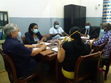 Bissau, 18 de agosto de 2020. – El ministro de Salud de Guinea Bissau, Dr. Antonio Deuna, sostuvo un encuentro con el embajador de Cuba acreditado en el país, Dr. C Raúl de la Peña Silva; estuvieron presentes además, la jefa de la BMC en Guinea Bissau, Dra. Milagros Valdespino Argudín, la Decana cubana de la Facultad de Ciencias Médicas “Raúl Díaz Argüelles” Dra. Quenia González Guerra y el Decano nacional de esa facultad, Dr. Mario Gómes.