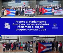 Frente al Parlamento Europeo, voces solidarias reclaman el fin del bloqueo contra Cuba