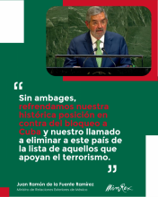 México reafirma en la ONU su rechazo al bloqueo contra Cuba y la inclusión de la Isla en la lista de estados patrocinadores del terrorismo