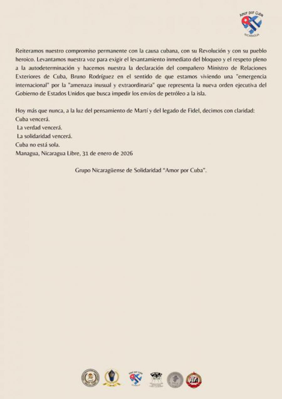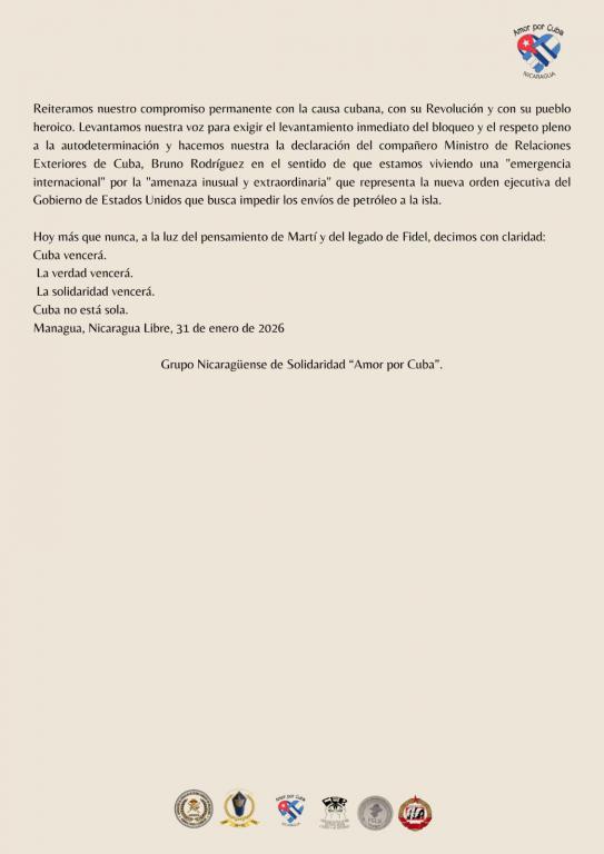 Cubanos residentes en Nicaragua condenan amenazas de Estados Unidos contra Cuba