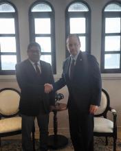 Ciudad de Panamá, 18 de noviembre de 2025. El ministro de Relaciones Exteriores de Panamá Javier Martinez-Acha Vásquez sostuvo una reunión de despedida con el embajador de Cuba en Panamá, Victor Cairo Palomo. En el encuentro el diplomático cubano agradeció los testimonios de amistad recibidos por parte del pueblo y gobierno panameños durante el cumplimiento de sus funciones en el istmo. Cairo Palomo reiteró la voluntad en continuar profundizando los vínculos bilaterales.