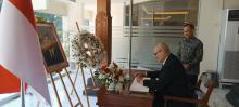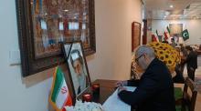 Firma Embajador de Cuba en Pakistán libro de condolencias en la Embajada de Irán