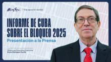 La Habana, 16 de septiembre de 2025.- El ministro de Relaciones Exteriores de la República de Cuba, Bruno Rodríguez Parrilla, presentará este miércoles, 17 de septiembre, a las 11h30 (hora de Cuba), ante la prensa nacional y extranjera, la actualización del Informe de Cuba en virtud de la resolución 79/7 de la Asamblea General de las Naciones Unidas, titulada “Necesidad de poner fin al bloqueo económico, comercial y financiero impuesto por los Estados Unidos de América contra Cuba”, correspondiente al período marzo 2024 - febrero 2025.