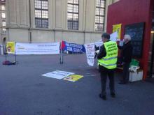 Berna, 17 de noviembre de 2020.- Activistas de la Asociación Suiza-Cuba se manifestaron contra el criminal bloqueo económico, comercial y financiero de EE.UU. a Cuba en su vigilia tradicional de cada 17. En esta ocasión las acciones tuvieron lugar frente a la Estación de trenes en Berna, mientras que otros amigos y amigas desde el cantón del Ticino lo hicieron desde sus casas, recordando que aún en tiempos de pandemia renuevan el llamado de "No al Bloqueo".