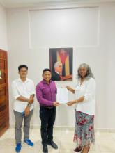 Díli, 20 de febrero de 2026. El secretario general de la Asociación de Amistad Timor Leste-Cuba (AATLC) Dr. Herculano Seixas dos Santos, junto al coordinador de la Solidaridad con Cuba, Dr. Joaquín de Jesús Vaz, se reunieron con la embajadora Alina Aldama, para hacer entrega de un documento donde muestras sus deseos de apoyo al pueblo cubano y condenan las agresiones del gobierno de los EE.UU. contra Cuba.