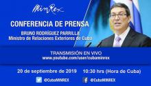 El encuentro con la prensa nacional y extranjera se realizará en el Ministerio de Relaciones Exteriores, a las 10:30 horas, y será transmitido en vivo a través del canal Youtube y de la página en Facebook de Cubaminrex.