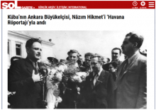 Ankara, 4 de junio de 2020. El reconocido portal noticioso “Sol” de Turquía dedicó un artículo a resaltar un mensaje publicado por el embajador cubano, Luis Amorós Núñez, en su cuenta en la red social Twitter, en ocasión del 57 Aniversario del fallecimiento del gran poeta y dramaturgo turco Nazım Hikmet.
