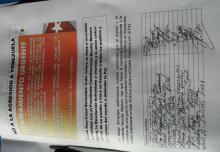 Bissau, 16 de febrero 2019.- Solidaridad con el pueblo y el Gobierno de Venezuela desde Guinea Bissau. Se inicia campaña de recogida de firmas por la asociación de ex Estudiantes y amigos de Cuba. Integrantes de la Brigada Médica Cubana, de los primeros en plasmar su firma. Manos fuera de Venezuela. Estudiantes de la Facultad de Medicina Raúl Díaz Arguelles García, se suman a la iniciativa.
