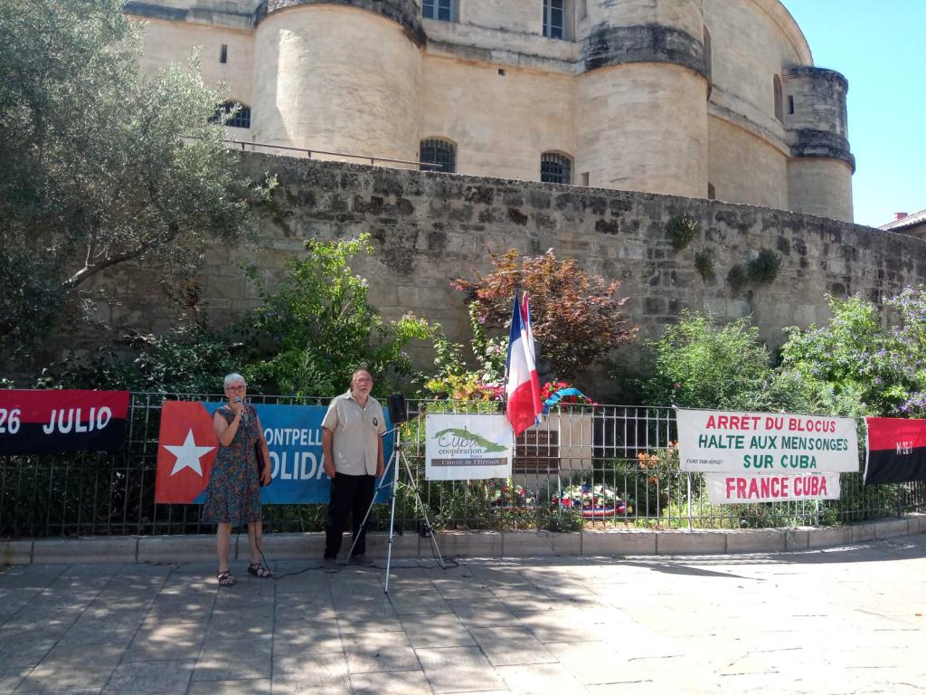 Montpellier, 26 juillet 2024-Le comité local de l'Hérault de l'association France Cuba et l'organisation Montpellier Cuba Solidarité ont organisé un événement politique dans la ville française de Montpellier pour commémorer le 71e anniversaire des assauts contre les casernes Moncada et Carlos Manuel de Céspedes.