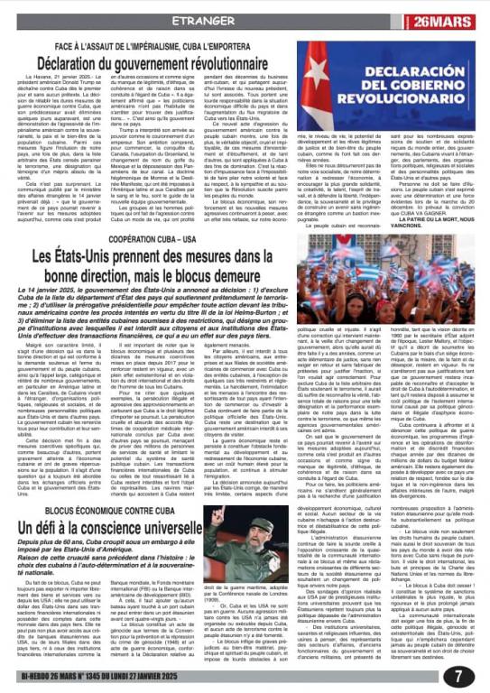 « La communauté internationale doit à nouveau exiger la fin de cette politique génocidaire qui, malgré son application, n'empêchera jamais le peuple cubain de défendre sa souveraineté et son droit à choisir librement ses destinées », conclut l'article.