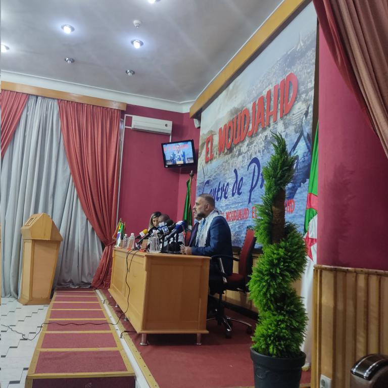Argel, 31 janvier 2024. L'ambassadeur de Cuba en Algérie, Armando Vergara Bueno a participé dans une conférence de soutien et de solidarité avec le peuple palestinien qui s’est tenue, hier au Forum du journal algérien d’El Moudjahid, en collaboration avec les ambassadeurs de Palestine, d’Afrique du Sud et la contribution des ambassadeurs du Yémen, du Venezuela et de la Namibie. Parmi les invités, de nombreux autres représentants du corps diplomatique accrédité à Alger et des représentants de l’Assemblée Populaire Nationale (APN), du Conseil de la Nation et du Ministère des Affaires Etrangères.