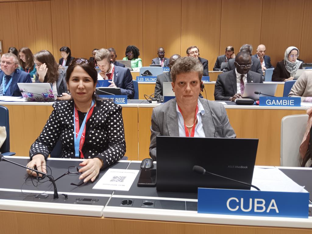 Genève, le 15 mai 2024 - Du 13 au 24 mai, Cuba participe à la Conférence diplomatique de l'OMPI sur la propriété intellectuelle, les ressources génétiques et les savoirs traditionnels associés, qui se tient au siège de l'Organisation à Genève (Suisse).