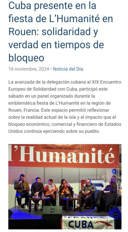 Cuba présente à la fête de L'Humanité à Rouen : solidarité et vérité en temps de blocus