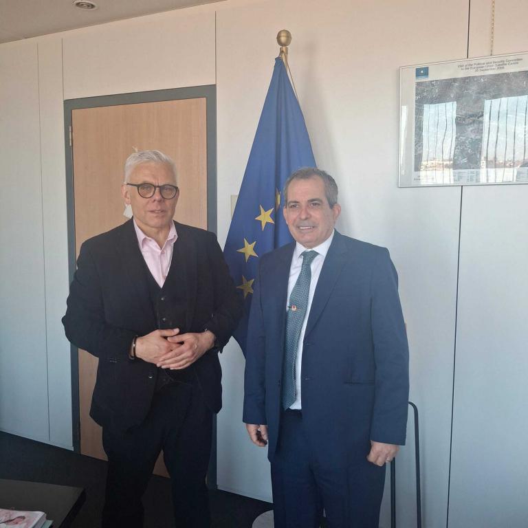 Bruxelles, 7 mars 2025.- L'ambassadeur Juan Antonio Fernández Palacios a été reçu par M. Maciej Popowski, directeur général de la protection civile et des opérations humanitaires de la Commission européenne (DG ECHO), au siège de cette entité. Au cours de la réunion, le représentant de la plus grande des Antilles a profité de l'occasion pour exprimer sa gratitude pour la mobilisation des ressources de l'Union européenne en cas de catastrophes dans le pays.