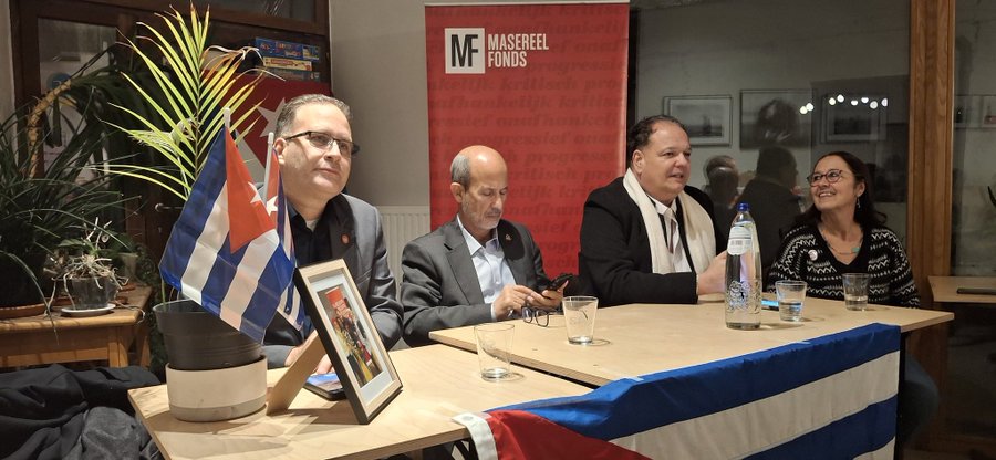 Anvers, 3 décembre.- Au centre culturel emblématique Peperfabriek, un échange fructueux a débuté entre des membres du mouvement de solidarité avec Cuba, des Cubains résidant en Belgique et les députés de l'Assemblée nationale du pouvoir populaire Enrique Alemán, Luis Morlote et Rolando González.