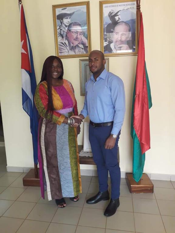 Burkina Faso, 27 février 2020. Le troisième secrétaire César Crespo Pérez en qualité de chargé d'affaires a.i. Le 27 février, elle a reçu l'ambassadrice du Musée national du Burkina Faso, Apolline Traoré, qui a invité Cuba à un grand événement culturel organisé par cette institution renommée en novembre. Ils ont convenu que l'éducation et la culture sont les meilleures armes dont nos peuples disposent pour faire face aux défis d'aujourd'hui. L'ambassadeur du Musée national du Burkina Faso s'est intéressé au vaste système de promotion culturelle qui existe à Cuba.