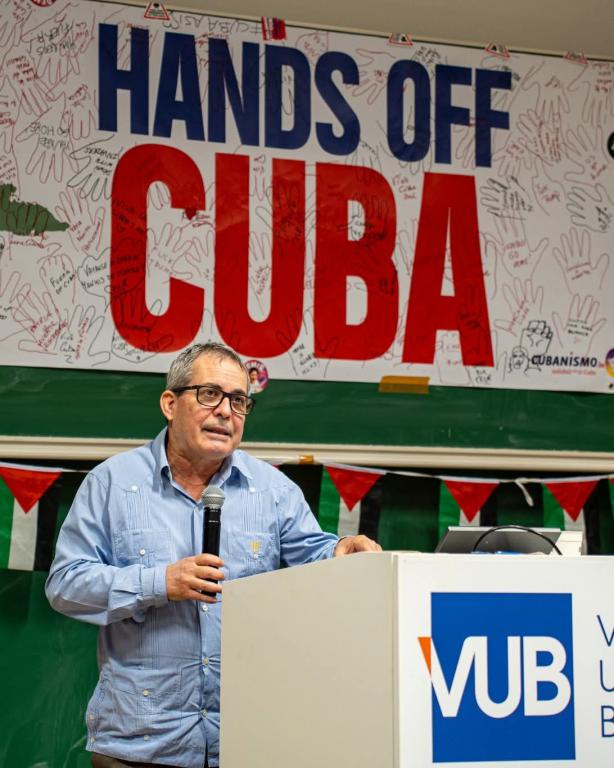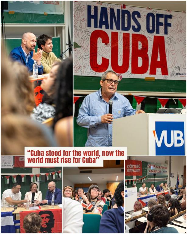 Sous le titre « Cuba stood for the world, now the world must rise for Cuba », la conférence s’est transformée en un puissant espace de dénonciation de la politique agressive de blocus et d’asphyxie économique menée par les États-Unis contre l’île. L’événement a rassemblé une assistance massive de plus de 170 personnes, majoritairement des étudiants universitaires, membres de COMAC, l’organisation de jeunesse du Parti du Travail de Belgique (PTB/PVDA).