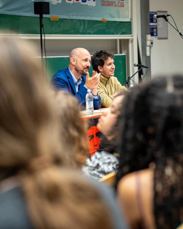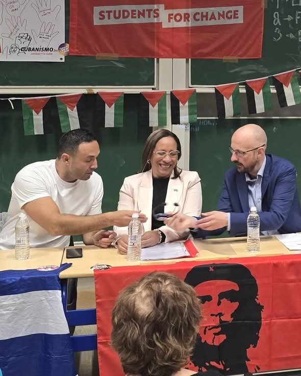 Le prestigieux panel qui a animé le débat était composé de : Marc Botenga, député européen belge pour le Parti du Travail de Belgique (PTB-The Left) ; la Dre Damarys Álvarez, cheffe adjointe de la brigade médicale cubaine en mission de solidarité en Calabre, Italie ; le Dr Salim Lamrani, intellectuel reconnu, historien et professeur franco-algérien ; et Octave Daube, président de l’organisation de jeunesse COMAC.