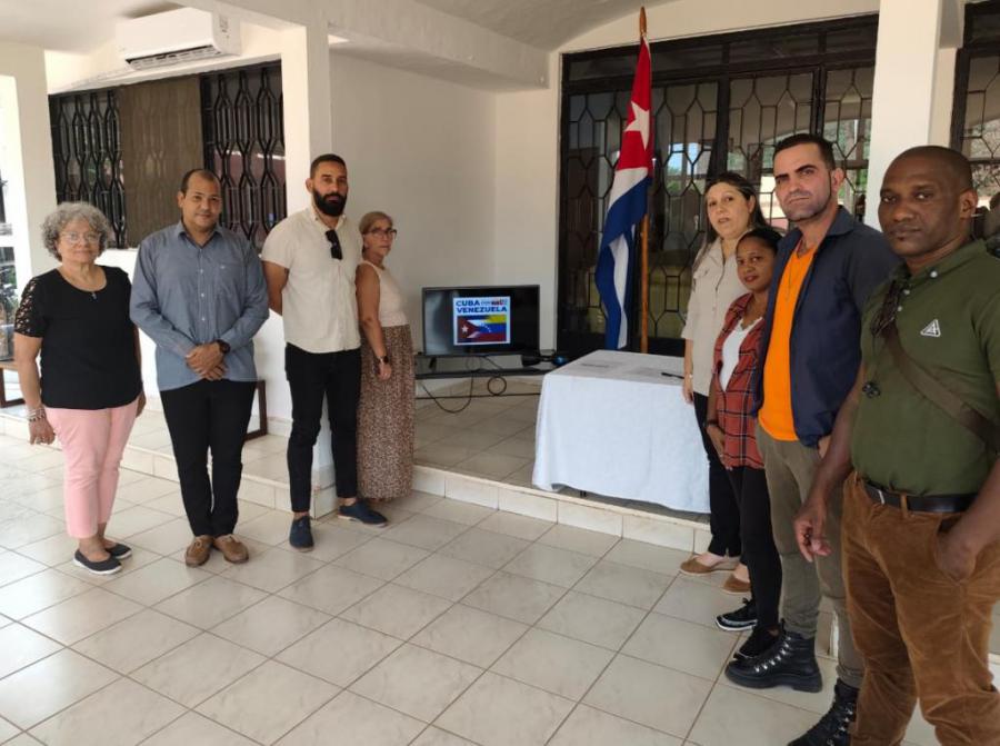 Au cours de la cérémonie solennelle à laquelle ont participé les employés de la mission diplomatique et les membres de la Brigade médicale cubaine qui fournissent des services médicaux dans ce pays, les personnes présentes ont signé le document en signe de soutien et de solidarité indéfectibles envers le gouvernement et le peuple frère du Venezuela.