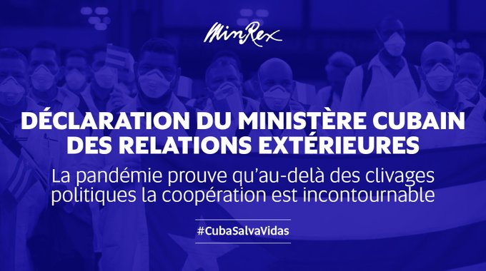 En veut-on un autre exemple. Les attaques absolument immorales que l’administration Trump ne cesse d’orchestrer contre la solidarité que la Révolution cubaine offre aux gouvernements qui lui demandent son aide pour contrer le Covid-19. Au lieu de chercher à promouvoir la coopération et à mobiliser une réponse mondiale concertée, de hauts fonctionnaires du State Department passent leur temps à menacer les gouvernements qui, face au drame de cette pandémie, décident en toute souveraineté de demander l’aide de Cuba.
