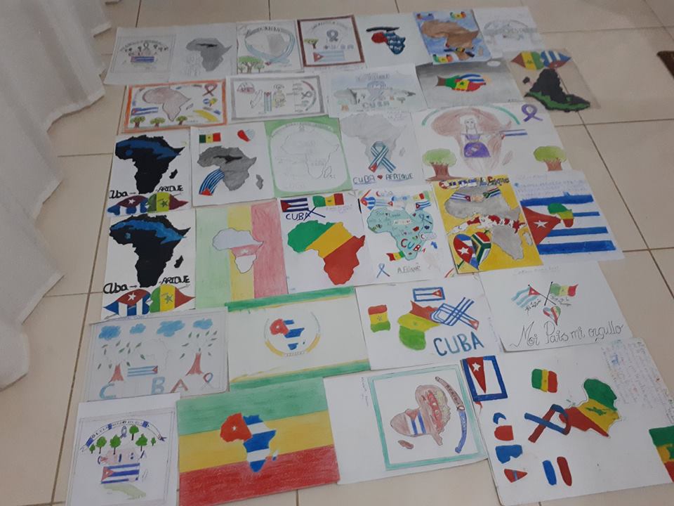 À la suite de l'initiative promue, très appréciée par les dirigeants et les enseignants des deux centres scolaires, un grand nombre d'œuvres ont été reçues, dans lesquelles les enfants symbolisaient, de manière créative et colorée, ce qui représente les relations entre Cuba et le continent africain, et en particulier le Sénégal. En plus des drapeaux et des cartes cartographiques pour visualiser ces liens, les enfants se sont tournés vers d'autres conceptions représentatives des principaux aspects qui, de par leur perception, rapprochent nos villes telles que la santé, le sport et la musique.