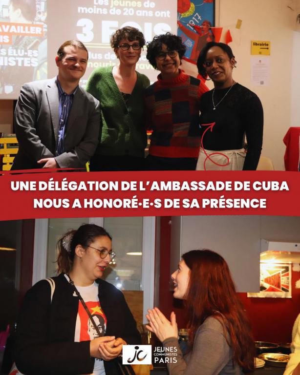 L’Ambassade de Cuba était présente à la soirée de vœux organisée par la Jeunesse Communiste de Paris, un espace de rencontre, réflexion et réaffirmation de l’engagement pour la paix, la solidarité internationaliste et les valeurs de justice sociale.