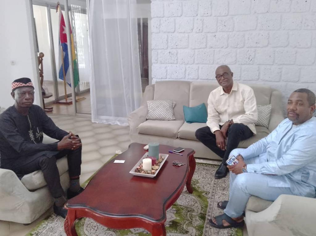 Conakry, République de Guinée. 17 octobre 2025. L'ambassadeur de la République de Cuba, Alexis Peña Orozco, a reçu au siège diplomatique cubain, les anciens boursiers à Cuba, M. Oumar Acuña Dabo, architecte, et M. Onivogui Moriba, avocat et licencié en droit, tous deux diplômés des universités cubaines de Matanzas, Camagüey et La Havane.