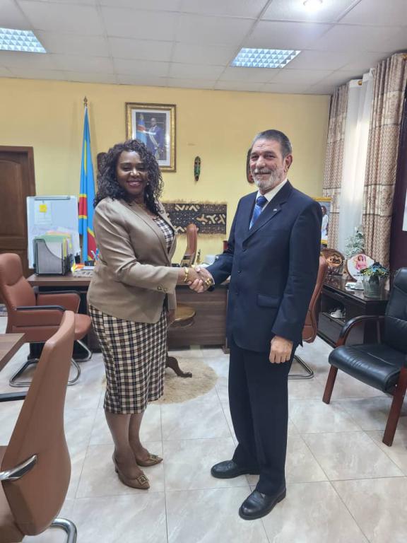 Kinshasa, le 22 octobre 2025 - L'Ambassadeur de Cuba, Jesús del Amo Fernández, a été reçu au siège de la Présidence de la République Démocratique du Congo par la chef de cabinet adjointe de la présidence chargée des affaires politiques, juridiques et diplomatiques, Mme Nicole Ntumba Bwatshia, avec laquelle il a échangé des informations sur la présentation à l'Assemblée générale de l'ONU du projet de résolution cubain contre le blocus américain.