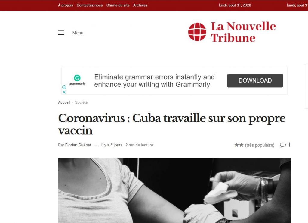Le journal béninois La Nouvelle Tribune publie un article sur le vaccin cubain contre Covid-19