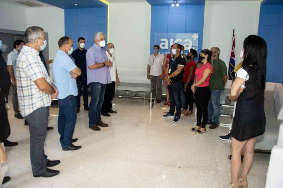 « Nous travaillons sur la question Abdala, "dur et sans gant". » C'est avec cette expression très cubaine que le directeur général des Laboratoires pharmaceutiques AICA, Antonio Emilio Vallin Garcia, a décrit la manière dont ses travailleurs mènent la bataille pour la santé, en accueillant, ce 19 juillet le Premier secrétaire du Comité central du Parti communiste et président de la République, Miguel Diaz-Canel Bermudez