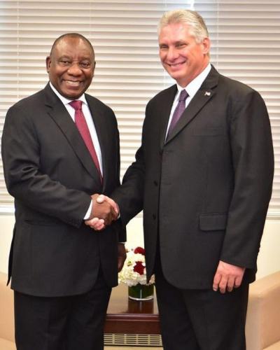 «Je remercie le président sud-africain Cyril Ramaphosa et le comité exécutif national de l'ANC pour leur solidarité permanente avec Cuba dans la lutte contre le blocus économique, commercial et financier imposé par les États-Unis» a écrit le président cubain sur Twitter.