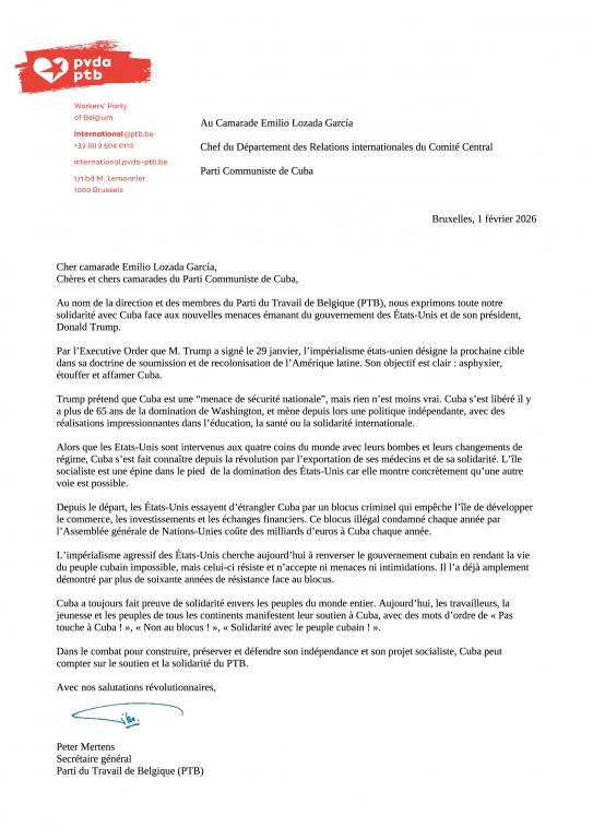 Le PTB se prononce contre les récentes mesures du gouvernement des États-Unis contre Cuba