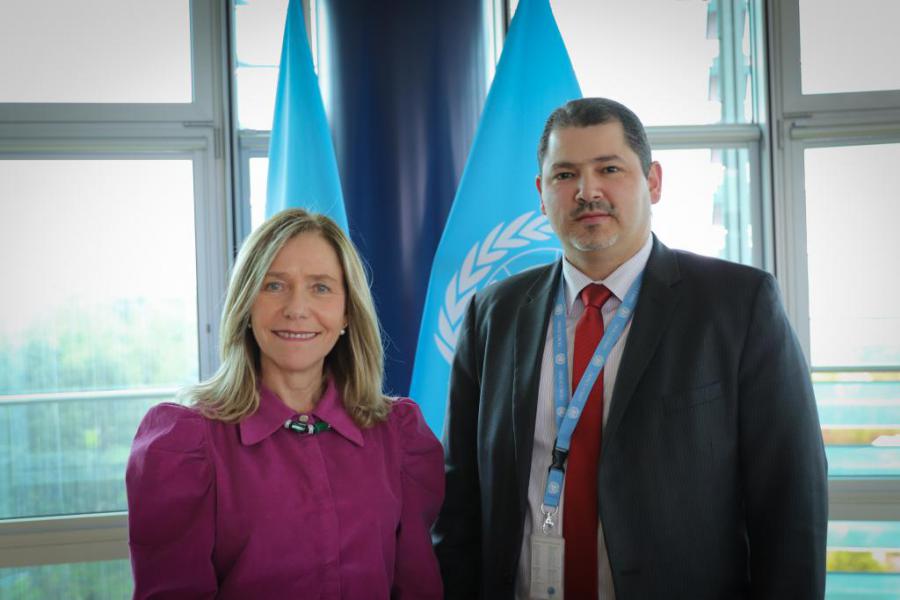 Genève, le 23 avril 2024 - Le nouveau Secrétaire général de l'Organisation météorologique mondiale (OMM), Celeste Saulo, a reçu l'Ambassadeur, Représentant permanent de Cuba à Genève, Juan Antonio Quintanilla Román.