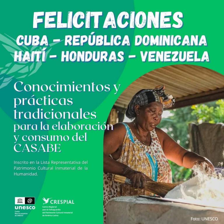 Paris, le 5 décembre 2024. Dans le cadre de la 19e réunion du Comité intergouvernemental pour la sauvegarde du patrimoine culturel immatériel, tenue à Asunción, Paraguay, l'UNESCO a officiellement reconnu les connaissances et pratiques traditionnelles pour la production et la consommation du Casabe comme patrimoine culturel immatériel de l'humanité.