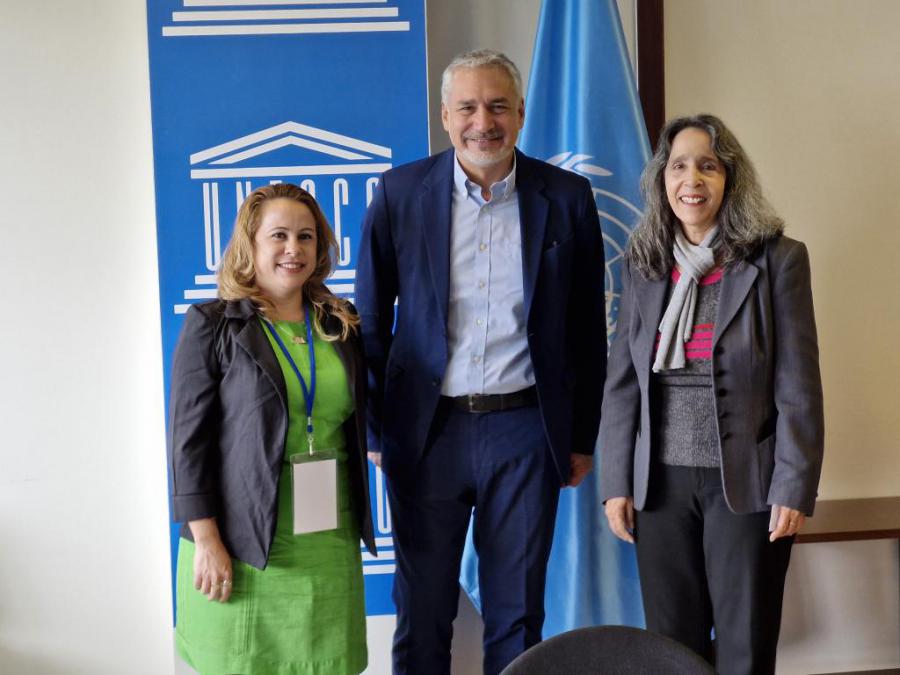 Paris, 10 octobre 2024. Dans le cadre de sa visite à Paris pour participer à la célébration du 30e anniversaire du programme de l'UNESCO sur la Route des esclaves, la vice-ministre de la Culture de Cuba, Lillitsy Hernández Oliva, a eu un échange fructueux avec le Le sous directeur général du secteur de la culture, M. Ernesto Ottone, et son équipe, à laquelle a également participé l'ambassadrice de l'île auprès de l'UNESCO, María del Carmen Herrera Caseiro.