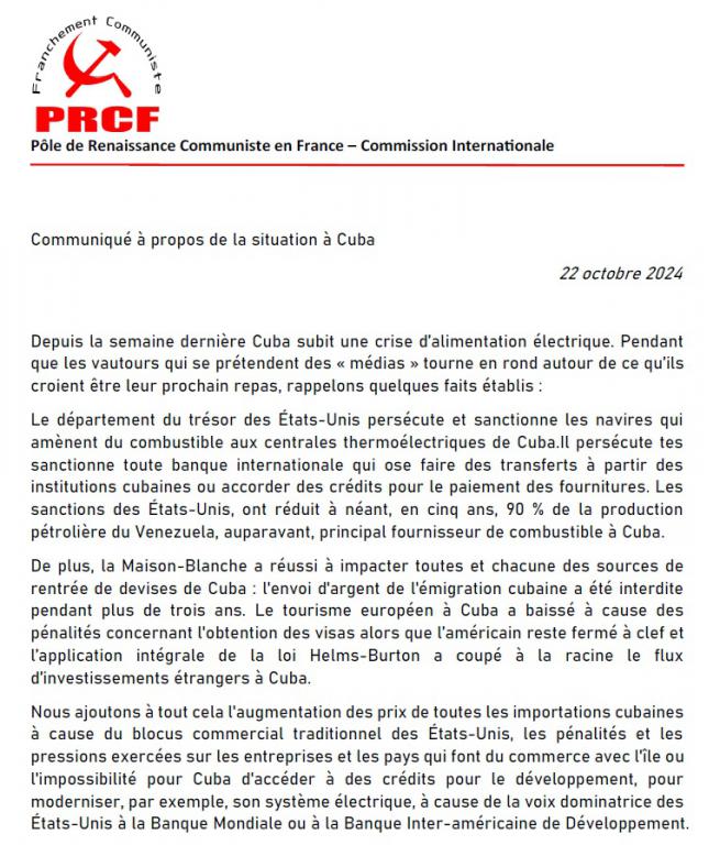 Communiqué à propos de la situation à Cuba